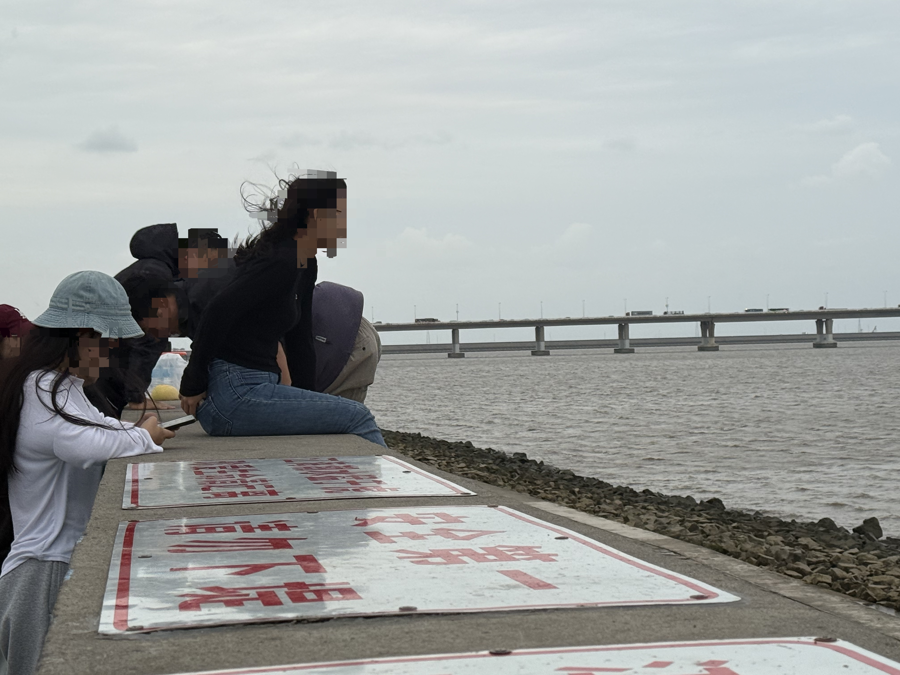 美则美矣,风险也不容忽视,海堤边缘湿滑难行,一旦失足后果不堪设想。根据“崇明海事发布”,今年6月,就有一男子擅自翻越防汛墙和防护栏涉水拍照,不慎滑倒落水,好在周边游客发现后,立即抛投救生圈并报警,最终及时获救。而此前,官方也曾多次发布提醒,上海长江大桥西游长兴岛丁坝落水风险较大,提醒大家不违规翻越防浪墙等设施。记者在现场也留意到,沿路的堤坝上方,几乎每隔十几米,就张贴有“禁止翻越”的警示牌。