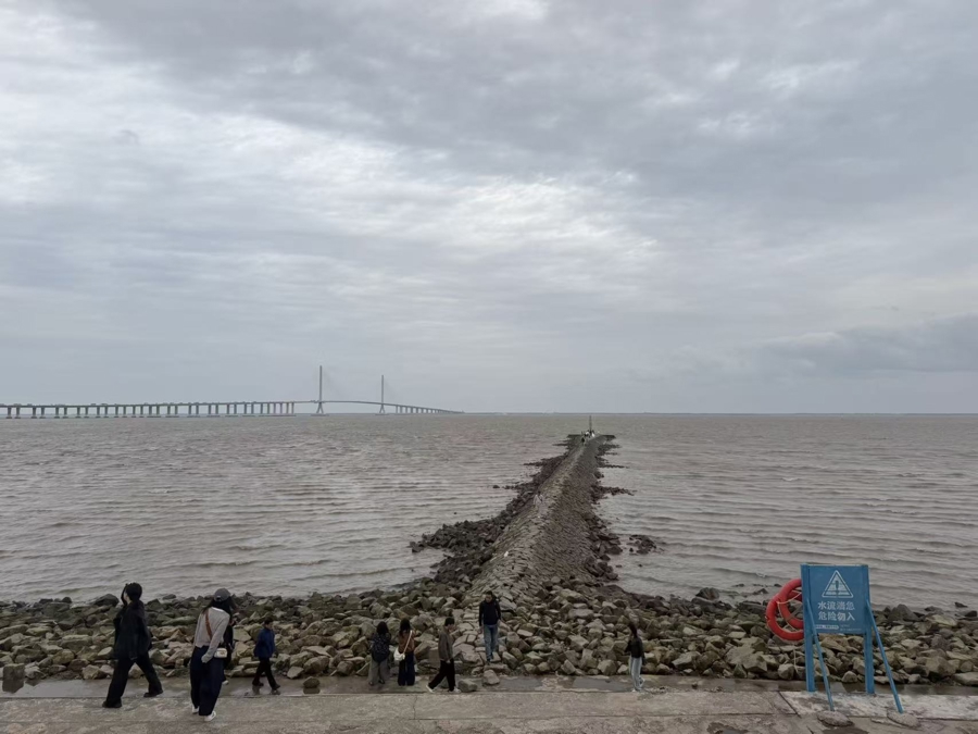 电影带来的热度,让长兴岛北岸的这处海岸线,在地图上也有了专属名称:易遥跳海取景地。记者循着导航,沿前卫支路自东向西向目的地驶去。前卫支路的北侧,紧邻长江入海口,沿路便可眺望远方雄伟的长江大桥,聆听浪涛拍打石堤的声音。尽管当天并非晴天,可并未阻挡游客的热情。距离目的地还有500米时,记者就看到路边已有不少车辆和行人停靠掌牛宝,导航更是显示,前方已然是拥堵路段。